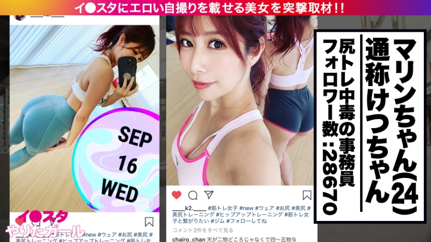 イ●スタでエロい動画をUPするビッチな女子にコンタクトを取り、どうにかこうにかSEXしちゃおうという、新時代SNSナンパ企画!①最近渋谷に出来たNewエリアの宮下パークにて待ち合わせたのは、マリンちゃん24歳。ケツスタグラマーとして活躍している彼女ですが、確かにヒップがすっごぉい!!ショートパンツからお尻がはみ出ちゃってます。②路上ではゆっくりお話出来ないので近くのカフェに移動してお話を聞きます。ワークアウトをするようになったきっかけを伺ったところ、学生時代すごく太っていて当時付き合っていた彼氏に体型を理由にフラれたのがきっかけだそう。それからトレーニングを始め身体が●れてくると、周りの視線も感じるようになり、ジムで初めて声をかけられたことを皮切りにいろんな人とヤルようになったようです。③そんなマリンちゃんですが、なんでも『フェラ』に相当な自信があるそうで、半信半疑だった我々にむきになったマリンちゃんは、「じゃ、今すぐヤろう!!」と言って連れてこられたのは、近くのトイレ…。マリンちゃんの本気フェラに気持ち良すぎて男優さんも直ぐにイッてしまいます。④早速ホテルに移動すると、エッチがしたくてたまらないマリンちゃんは男優さんにまたがりキスをしてプレイが始まります。大好きなおち●ちんが入ってくると身体を震わせてイキまくります!まさにまな板の上の鯉状態!!ハメ潮をまき散らして何度も絶頂し、恍惚の表情でセックスを堪能しています。1回では全然物足りないマリンちゃんは、貪るように2回戦、3回戦と濃厚なセックスを繰り広げていくのでした♪